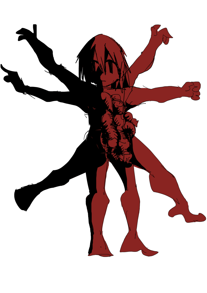 You pulled out a few strings tied to your spleen while reaching through your body fat and blood veins. You tried to cut them off with your teeth, but they reconnected. They were once the roots that passed you hope and confidence, but now they had sucked out everything. A radiant, toxic shell is what is left. The strings, the roots have ruined you, and you are cursed to be good for nothing. Is this your punishment for trying to escape your destiny?